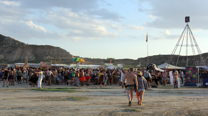 Paloma Zulueta, Josh Forrester y Julia Nada están estos días entre las más 3.000 personas que conviven en la efímera comunidad creada en la sierra de Jubierre.