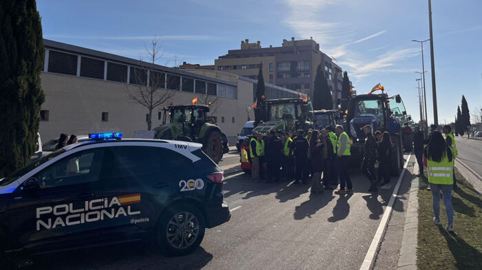 La Policía Nacional y Guardia Civil han impedido la entrada masiva de los tractores a la capital oscense.