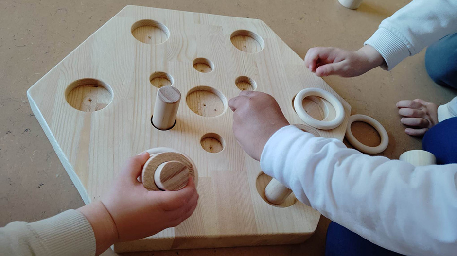 Artecor Monegros es un taller artesanal de madera que funciona desde hace cuatro años en Alberuela de Tubo y que elabora productos realizados por personas con discapacidad intelectual. En esta ocasión, sus integrantes han acercado por primera vez en una escuela infantil su propuesta de experimentación con juguetes didácticos de madera creados por ellas mismas.