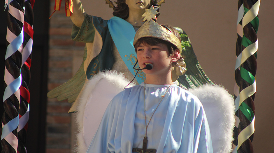 En el centro de la plaza, los danzantes han abierto repertorio con la mudanza de ‘Espada en mano’, derrochando brío y energía, y después, entre otras, han interpretado la Rueda, en la que los volantes han ascendido hasta los hombros de los danzantes entre cruces de espaldas. En el centro, como manda la tradición, se ha situado el Ángel, que ha protagonizado también el enfrentamiento teatral contra el Diablo, junto al mayoral, el rabadán y los generales cristiano y moro.